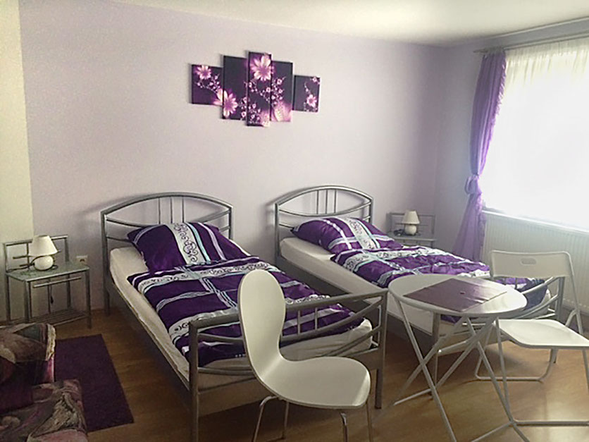 Unsere großzügigen Doppelzimmer sind komplett mit SAT-TV und Internet ausgestattet und verfügen teilweise über einen Balkon. Zusätzlich stehen eine Küche sowie ein Aufenthaltsraum zur Verfügung.