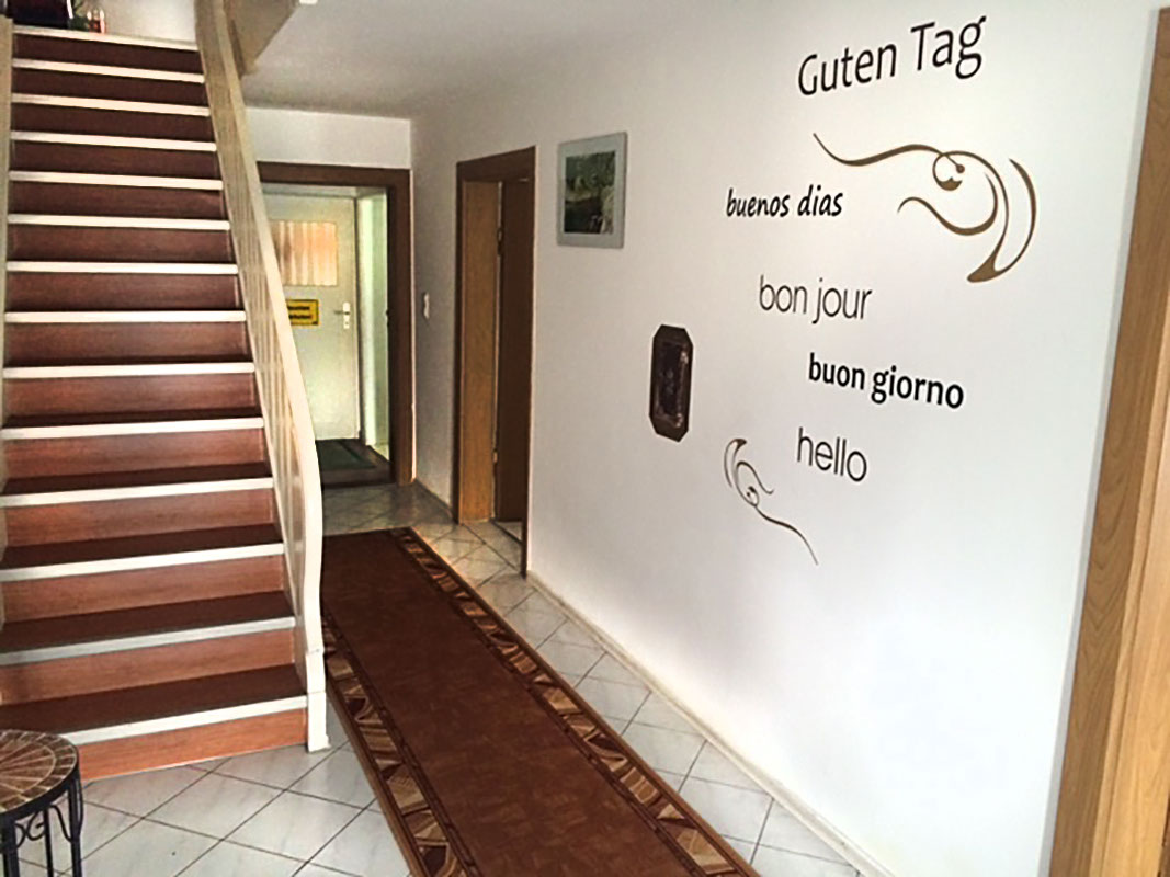 mit Dusche, WC und Badewanne befindet sich auf der Etage. Bettwäsche und Handtücher vorhanden. Alle Zimmer sind Nichtraucherzimmer.